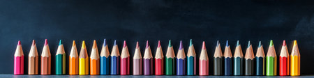 Colorful pencils in front of a blank blackboard. Education banner. Back to school concept