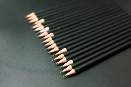 spiral arrangement of sharpened pencils on black background, artistic concept