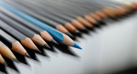 Close up macro shot of color pencil pile pencil nibs on dark background | Stand out from others