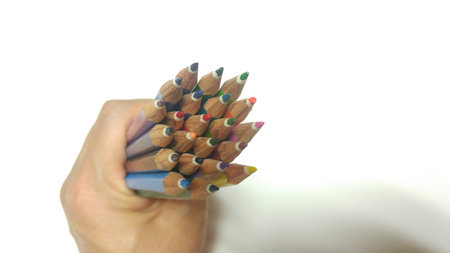 A person holding a bunch of colored pencils in their hand. AI Generative