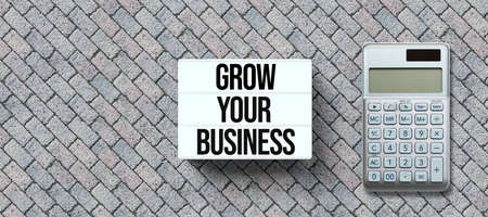 lightbox with message GROW YOUR BUSINESS on stone pavement background