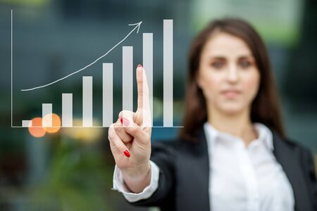 Business girl holding growth graph. Business development concept
