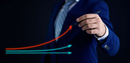 Businessman plan and increase of positive indicators in his business.