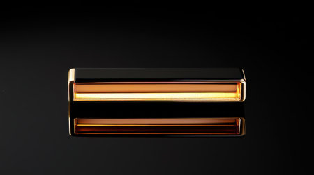 A stunning golden bar rests on a dark reflective surface, illustrating elegance and minimalism. The contrast between black and gold creates a captivating visual.