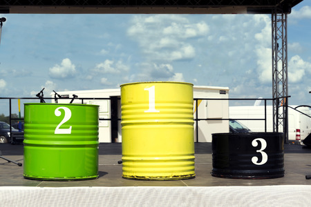 Pedestal for awarding the winner and prize-winners of the competition, red steel winners platform.