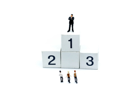 Miniature people : Businessmen stand on number 1, 2 and 3 wooden block toys with young businessman,Business Success concept.