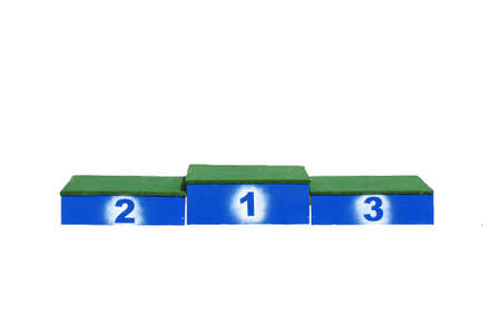 Wooden blocks stacking as a podium on white background. Success, win, winner, victory or top ranking concept.