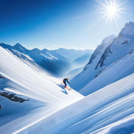 A skier glides down a snowy mountain slope, enjoying the winter sport adventure. Generative AI