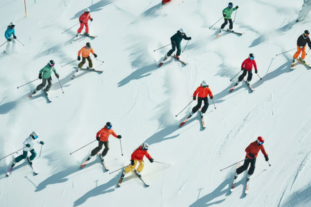 winter sports competition, with skiers and snowboarders racing down the mountain in timed race, created with generative ai