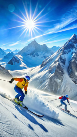 Skiing Elegance: Goggled Athletes Descend Snow-Covered Mountains