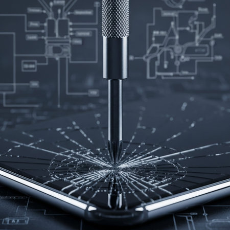 A closeup view captures the intricate circuitry of a smartphones open casing revealing secure chips and components involved in the data recovery process. Tools such as screwdriver