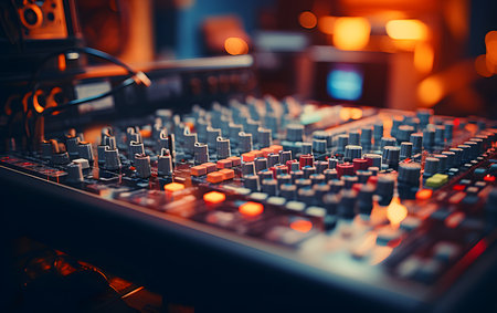 An audio mixer with its knobs and sliders meticulously adjusted, embodying precision and control in the art of sound engineering and music production