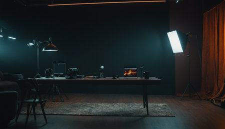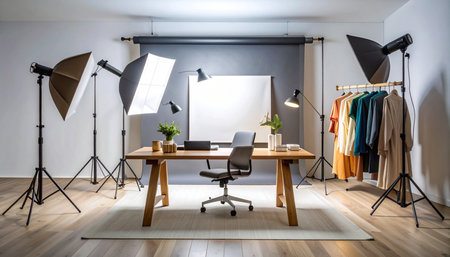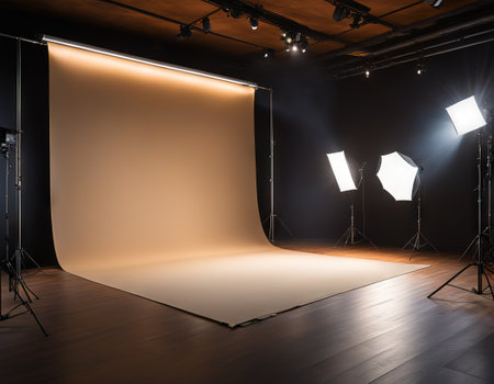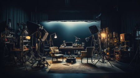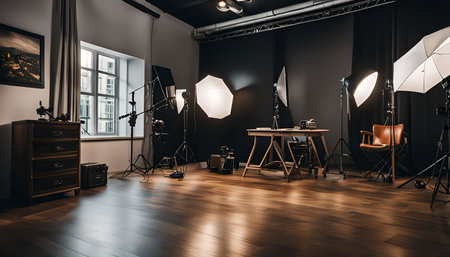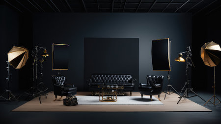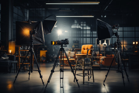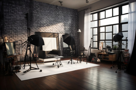 A close - up view of a modern photo studio, showcasing the professional equipment and setup. Generative AI
