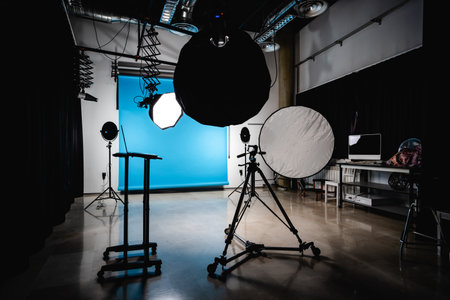 Interior of a modern photo studio with lighting equipment and lighting equipment
