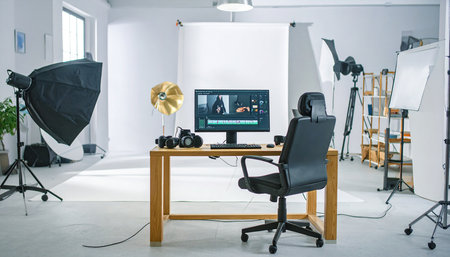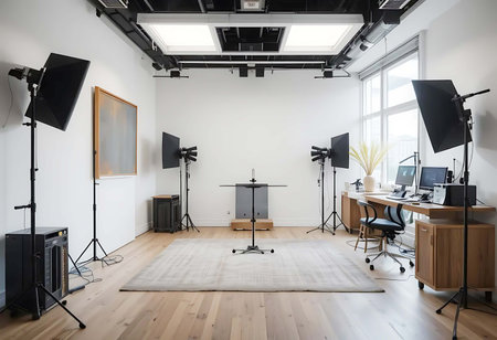 interior of a modern photo studio with professional equipment and lighting equipment