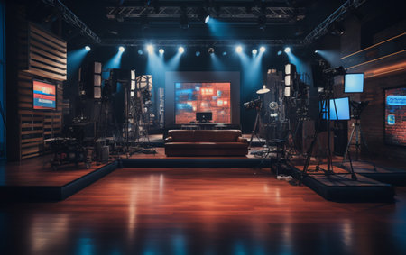 TV studio with camera and lights