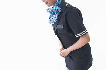 Airline captain and stewardess saluting isolated on white background