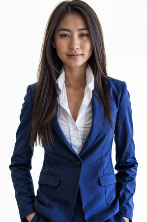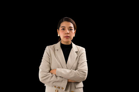 Portrait of beautiful asian businesswoman standing on white background.