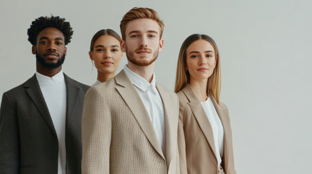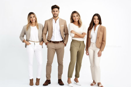 Positive professional team Group of positive and diverse people in smart casual wear looking at camera and smiling while standing against white background : Generative AI