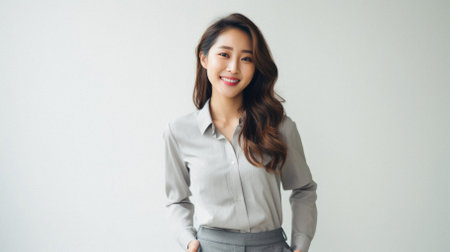 Corporate Asian businesswoman portrait isolate from a copyspace background for text