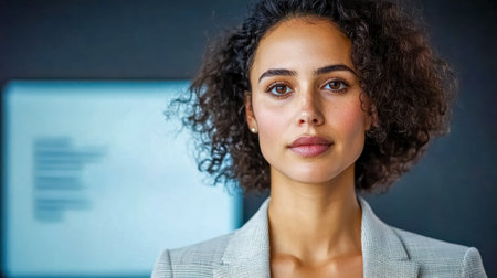 Confident female professional with engaging headshot, showcasing dedication to quality and success.