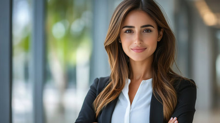 Female CEO of a company posing for the camera isolated from the background. Diverse women in corporate leading position concept image.