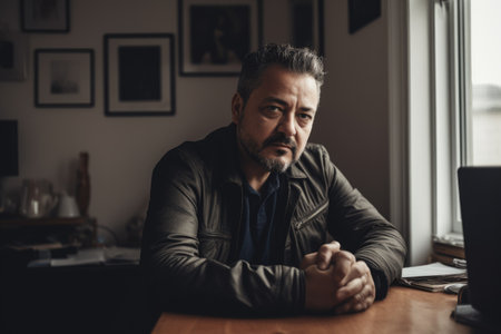 Portrait of a middle-aged businessman sitting at his desk in a cafe