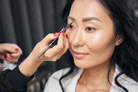 Make-up in a beauty salon. Applying makeup on the eyes.