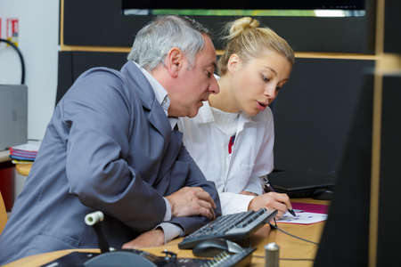 man with woman technician working with machine