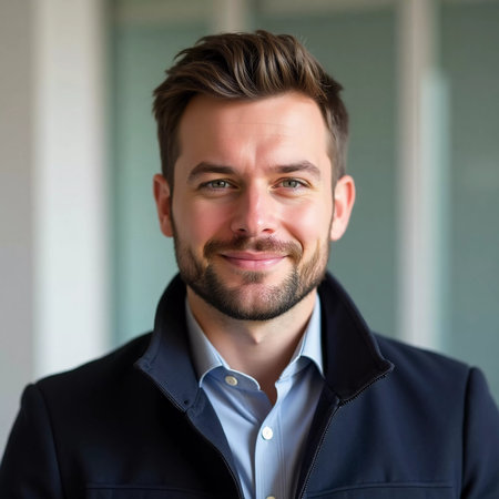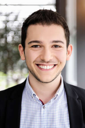 A headshot of a young, confident businessman in a suit, smiling slightly and looking directly at the camera.