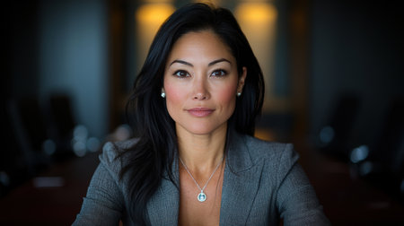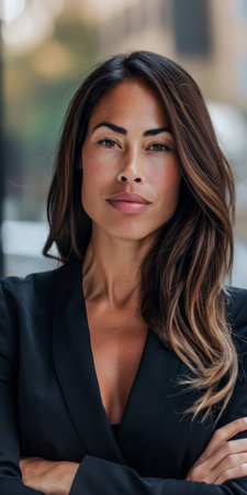 Female CEO of a company posing for the camera isolated from the background. Diverse women in corporate leading position concept image.