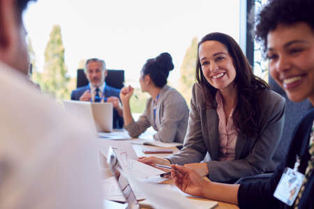 Group of board members meeting in office to discuss future of company