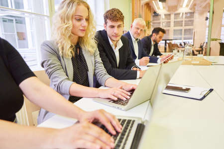Young business people taking e-learning in a computer course in the office