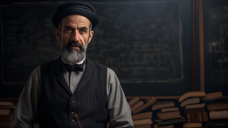 School teacher with a blackboard in the background, created with Generative AI technology.