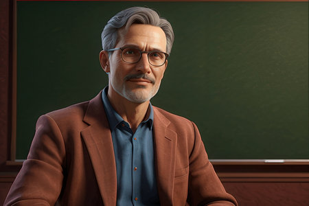 Academic success. Mature elegant professor with glasses. School thinking teacher or college and university lecture.