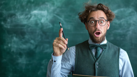 A senior educator pointing at a blackboard, filled with knowledge and experience, ready to impart wisdom to the next generation