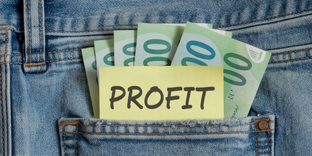 Profit sign on a vintage table. Business concept.