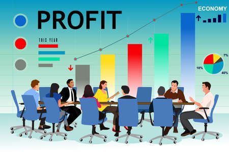 A vector illustration of Business People in a Meeting at Office
