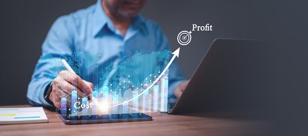 Man touching a profit concept on a touch screen with his finger