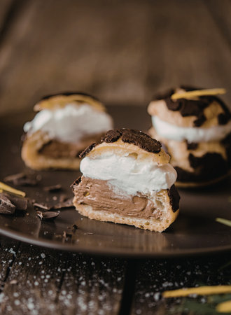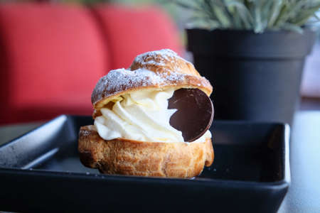 Choux cream served on black plate