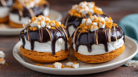 Delicious S'mores Treats with Chocolate Drizzle and Marshmallow Topping Displayed