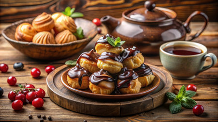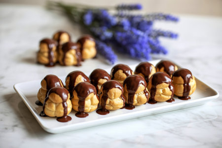 AI Generated. Profiteroles with Rich Chocolate Topping