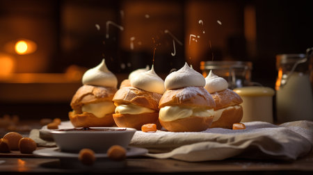Typical Swedish semla with sweet cream. Generative AI