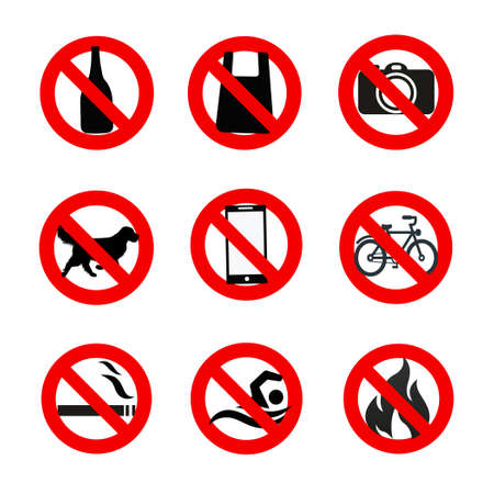 Set of No Signs for Different Prohibited Activities