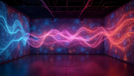 A mesmerizing display of swirling, vibrant colors fills a dimly lit space, inviting viewers to engage with dynamic led patterns that mimic natural auroras.