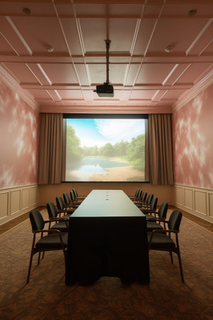 empty conference room with projector screen, created with generative ai