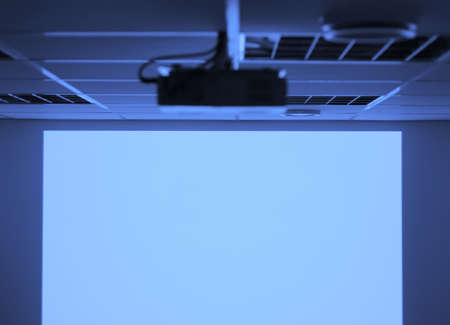 Modern conference room interior with projector screen. Presentation and business concept.