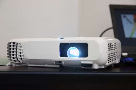 Modern laser projector in a conference room. LCD Projector technology video presentation