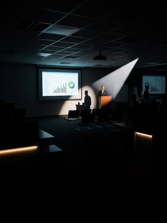 Mock up presentation Screen Seminar room interior Seat row Business training