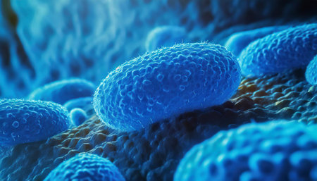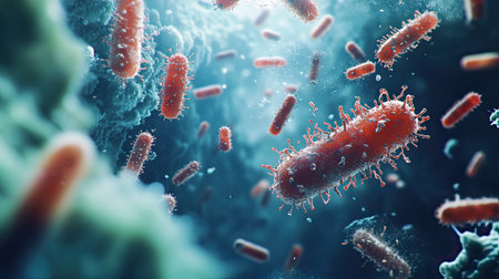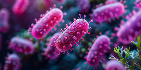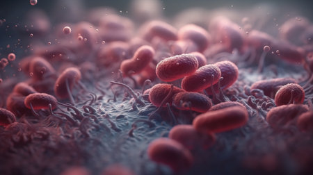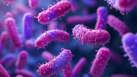 Microscopic View of Bacteria Cells Depiction of Microbial Organisms, Infection, and Disease